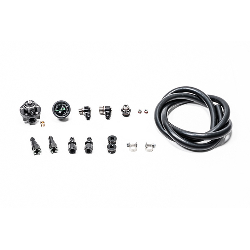 This kit is compatible with all Radium Engineering fuel rails for the Ford Barra engines. This high-flow system uses 3/8" EFI fuel hose and connects to the factory fuel pipes. All fuel rail fittings are included along with an adjustable fuel pressure regulator and pressure gauge.