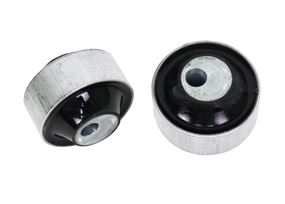 Benefit note: Whiteline caster kits are designed to improve cornering grip and vehicle straight line stability. This kit is supplied with dual offset bushings to give greater steering feel, more steering weight, greater precision all through increased static caster and dynamic negative camber gain. In addition, Whiteline bushings provide improved braking performance, and less under load alignment change.