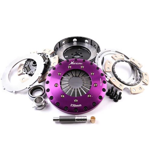 Kit includes: Lightweight Alloy Pressure Plate, 2x 230mm Sprung Ceramic Friction Discs, 4140 Chromoly Flywheel, Intermediate Plate, Release Bearing, Release Bearing Carrier, Flywheel Bolts, Pressure Plate Bolts, Spigot Bush and Alignment Tool